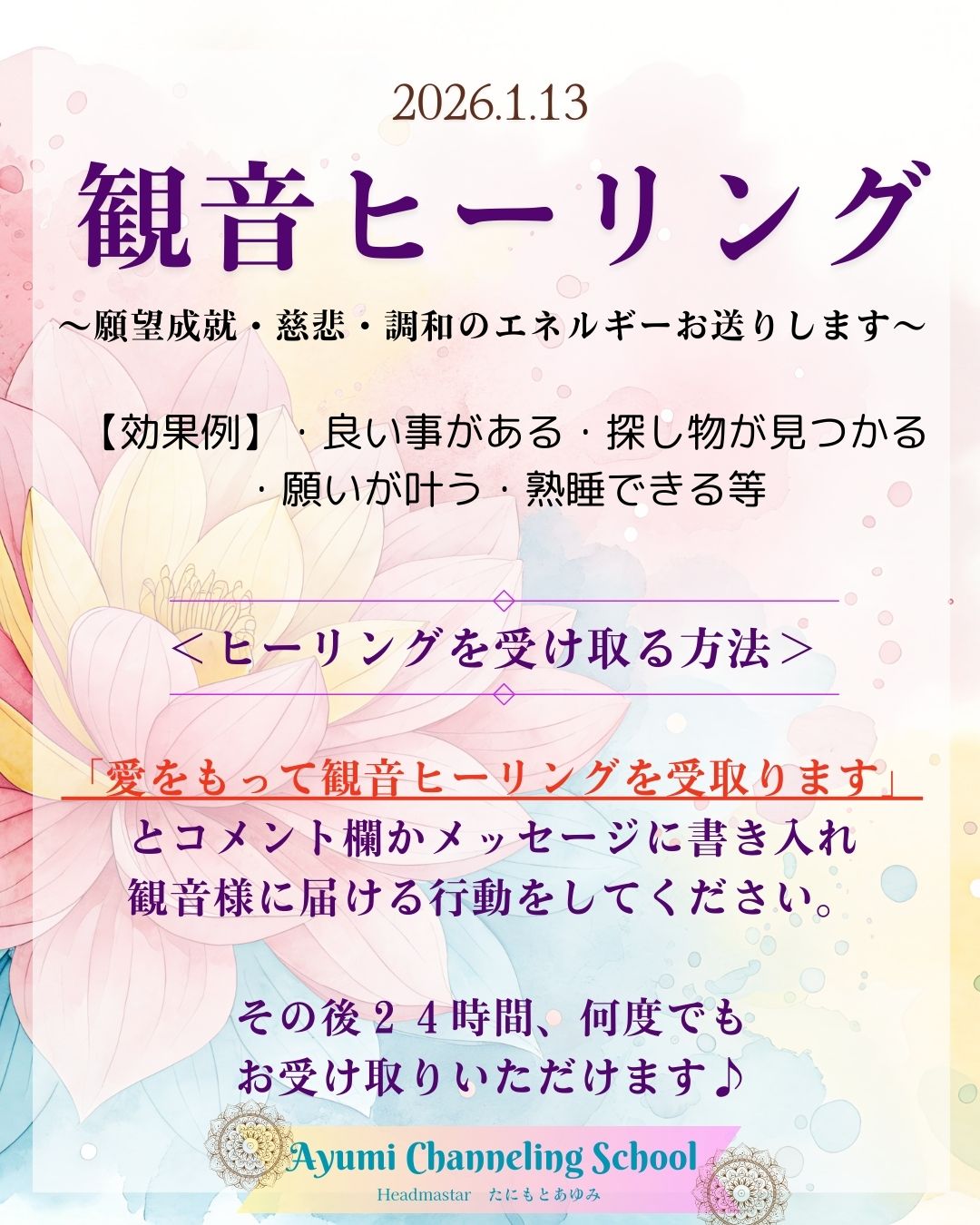 「愛をもって観音ヒーリングを受け取ります」